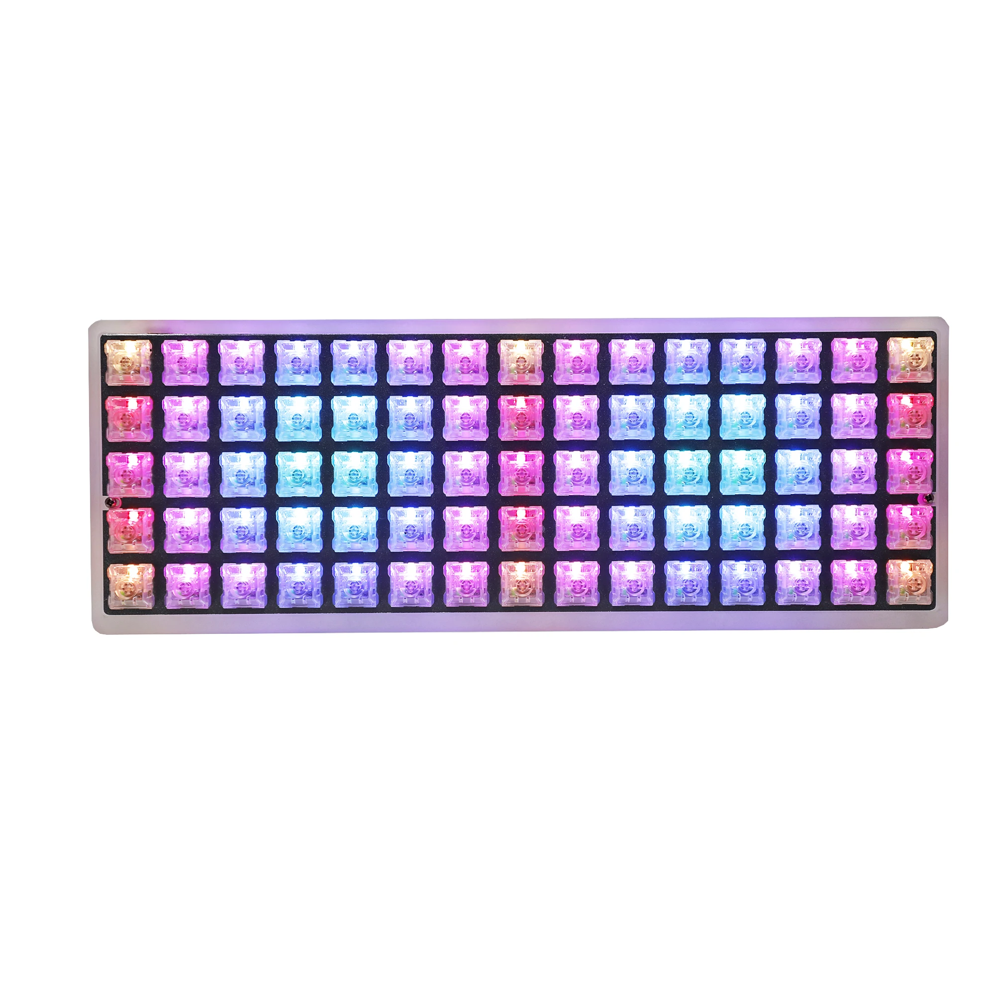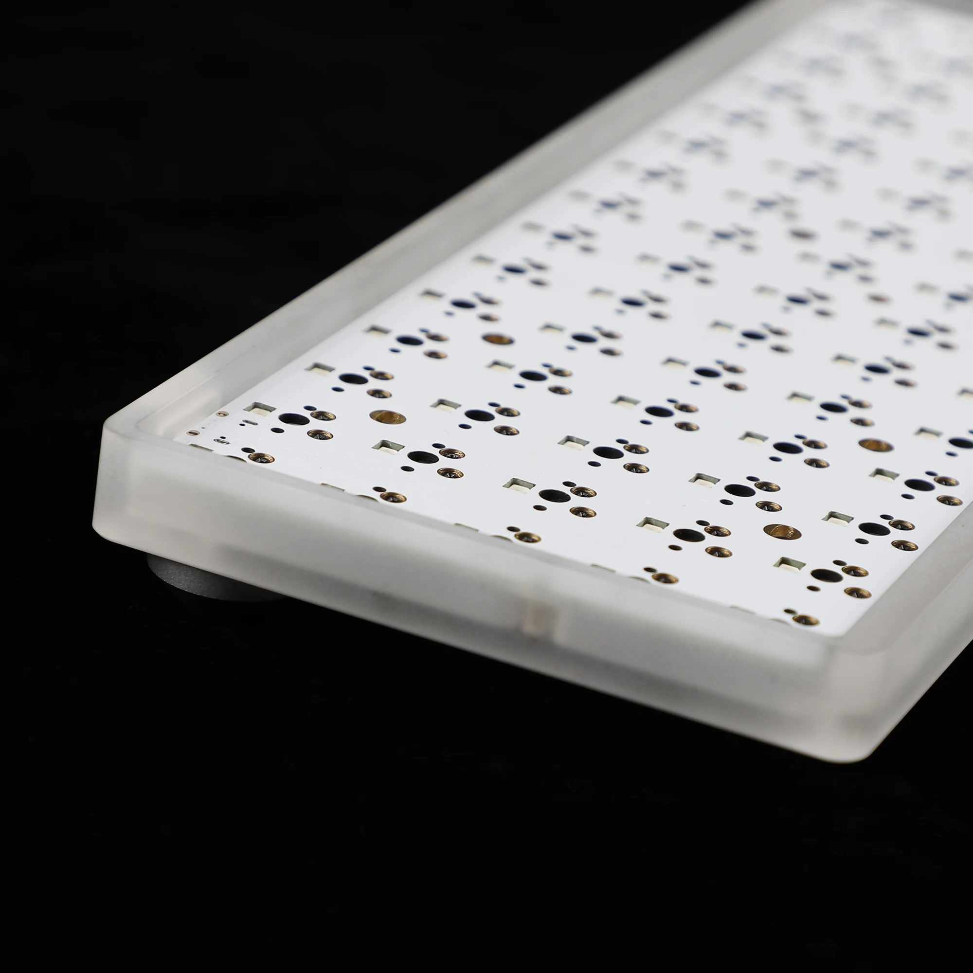 Crafted with CNC'd Acrylic, the case is RGB shine through. What’s more, the hot-swappable switch inserts allow you to swap out switches on the fly, without ever picking up a soldering iron.